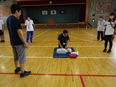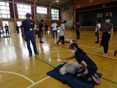胸骨圧迫による心臓マッサージやAEDの使い方をはじめ、事故発生時の一連の流れの確認と訓練を行いました。