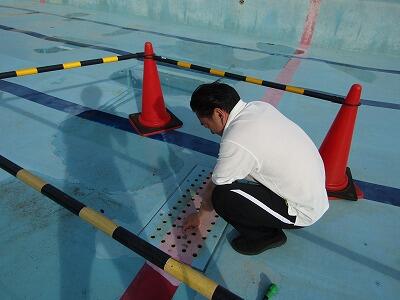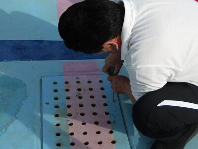 最後は私が、ボルトがしっかりと締まっていることを確認し、プール開きに向けて給水の準備ができました。