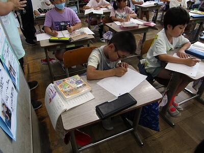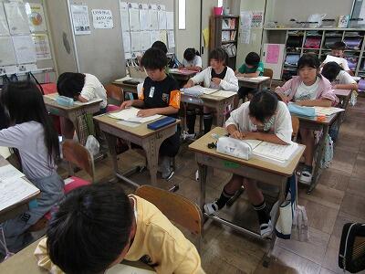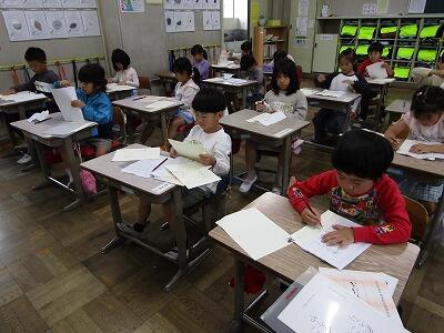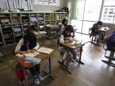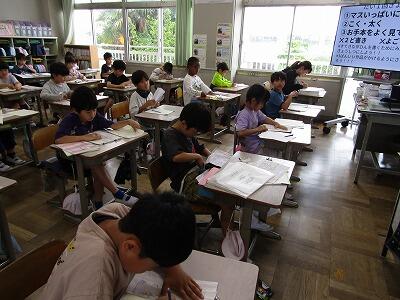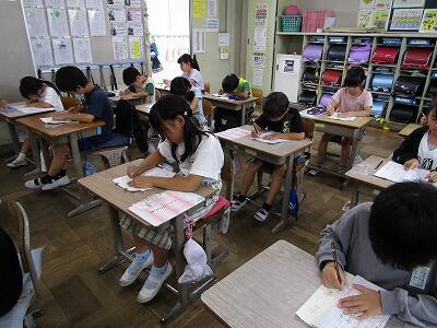 一文字一文字、お手本を見ながら字形の特徴をとらえながら、ていねいに書いていました。