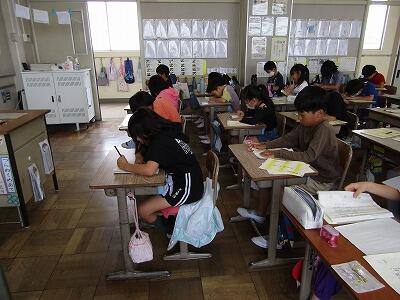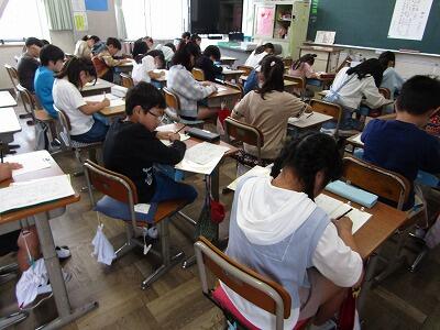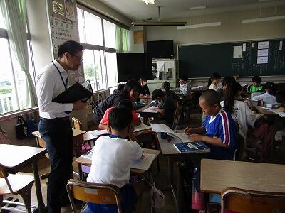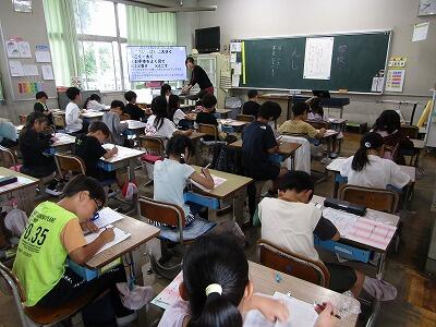 6年生の教室を訪れると教育実習生が算数の授業を行っていました。