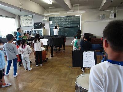 答えは後ろの奏者の弦楽器と取り替えるです。こどもたちは教師の話に耳を傾けて聞いていました。