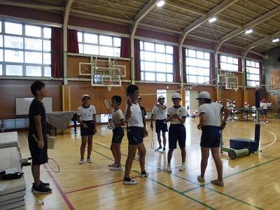 バドミントンクラブ 試合を開始する前にチームを確認しています。