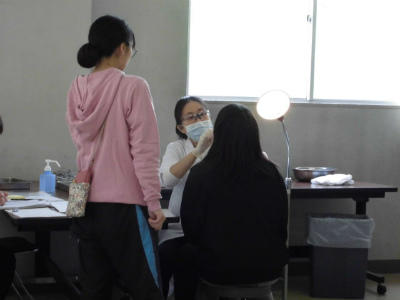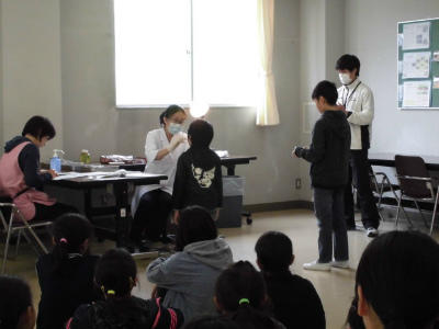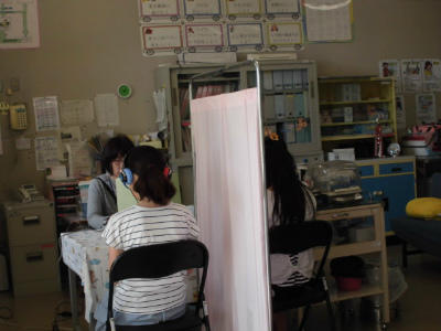 5年生の聴力検査です。保健室で静かに行いました。