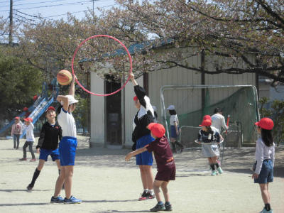 とても暖かで気持ちのよい昼休みでした。校庭には、様々な遊びをして楽しむ子どもたちの姿が見られました。