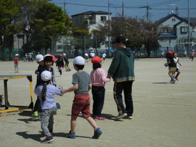 先生と鬼ごっこをしている2年生もいます。