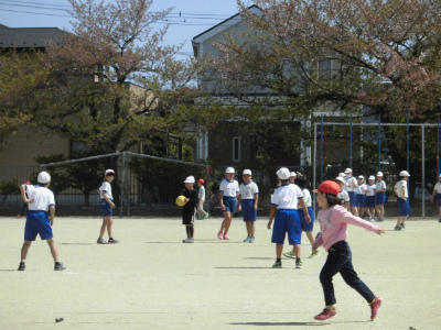 校庭で遊べる日はとてもうれしそうな子どもたちです。ボール遊びや鬼ごっこが人気です。チャイムがなると、走って教室に戻ることもできます。