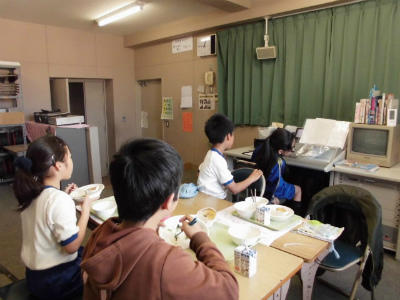 きょうの学校生活(給食と友だちタイム)