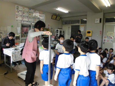 1年生 身体計測 しっかり並んで静かに受けることができました。