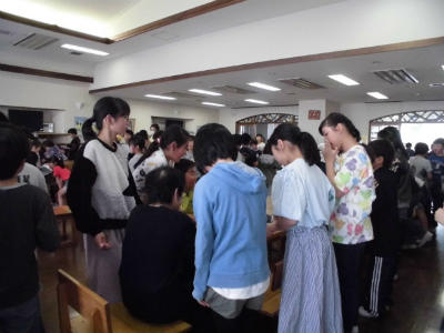 午後の離任式の準備・練習をしています。