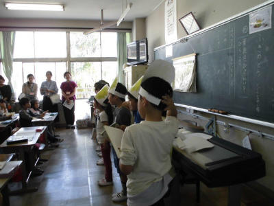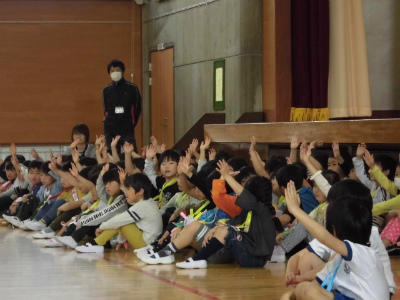 クイズに答える1年生の様子です。