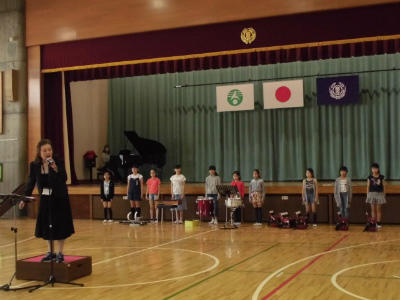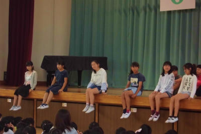 2年生がステージの前に並びました。緊張気味でしたが、ひばりのようなきれいな歌声を披露できました。曲の強弱も付けられて感心しました。