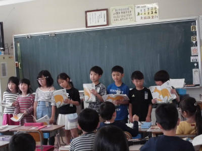 2年生 授業参観 国語 「ふきのとう」のお話を音読します。グループ毎に工夫した音読できるよう、考えたり発表したりしています。