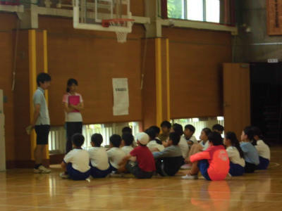 姿勢良く話を聞く子どもたちです。2年生が生活科の授業後に、よくできたことを先生から聞いているところです。