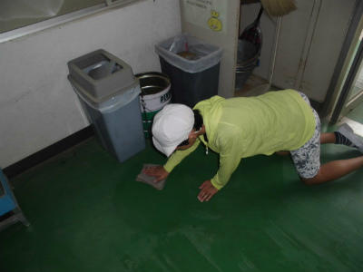 自分が担当する色をカップに入れて、フェンスに塗り始めるところです。
