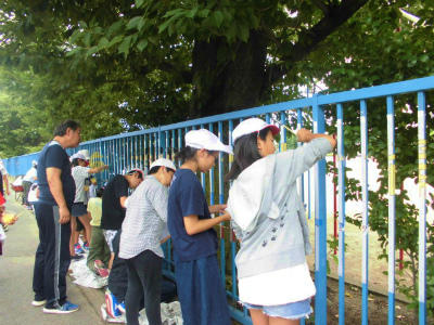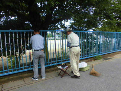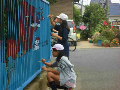 真剣に取り組んでいます。どんな絵が描かれフェンスが変身するのか、楽しみです。