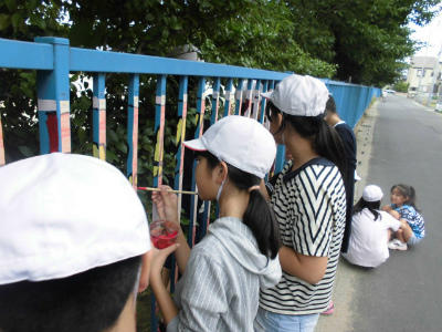 6年生フェンスアート「学校をきれいに楽しく」