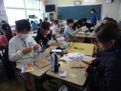 5年図工:針金を工夫しながら、いろいろな形を作っています。