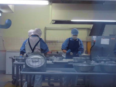 給食室の様子です。もうすぐできあがるのでしょうか…