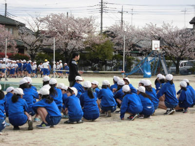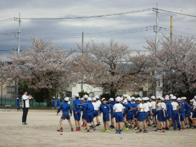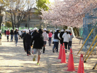 春が近づく学校。暖かな中、走る姿も軽やかに…
