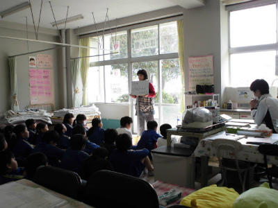 家庭科室では、5年生が衣服の働きについて学習しています。