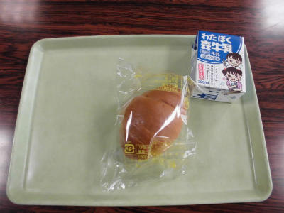 1年生 ミニ給食です。バターロールと牛乳をいただきました。