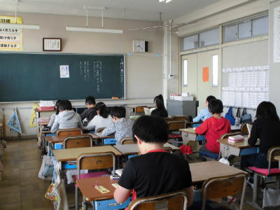 2年生:外国語(英語)の授業です。体を使って歌っていました。