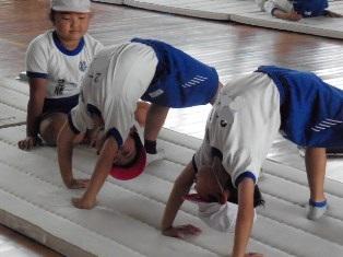 3年生の体育は、体育館でマット運動です。