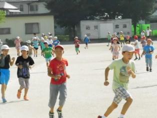 今日も暑さに負けずに、朝マラソンで体を鍛える子どもたちです。