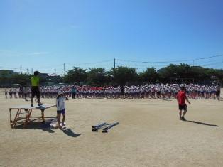 今朝も、暑さに負けず、心と体を鍛える子どもたちです。