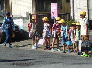 今日も夏空の中、子どもたちは事故なく登校することができました