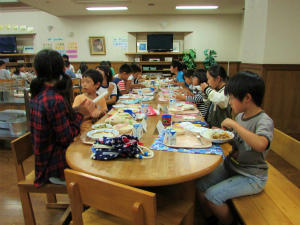 今日は、7月生まれのお誕生日給食です。7月生まれの児童と