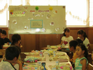 今日は、お誕生日給食(6月生まれ)でした。6月生まれの児童と教職員が一緒に