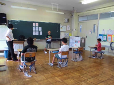 夏休みに取り組んだ自由研究の発表会を行っています。テーマの選び方、研究の進め方、まとめ方を友だちから学ぶと、来年度にも活かせそうです。