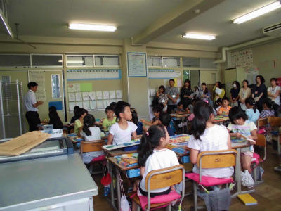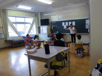 高学年児童が「スマイル先生」になって低学年児童の学習を支援することもあります。