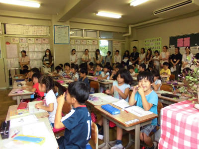 ランチルームには、7月生まれの子どもたちと教職員が集まって会食しました。
