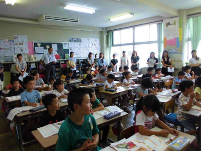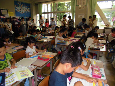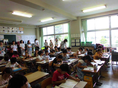 夏休みにも、水泳と算数の学習のために、元気に登校する子どもたちがいます。