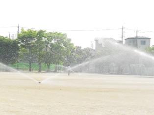 しばらく雨が降らないのでスプリンクラーで散水しました。