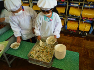 今日の給食は、こどもの日にちなみ、「こどもの日特別メニュー」