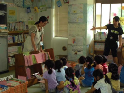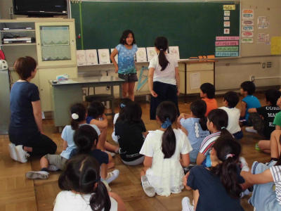 月曜日の朝は、おはなし会の皆様に読み聞かせを行っていただきます。
