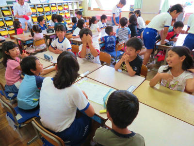 慣れの学習が終了し、自由時間となりました。教師と一緒に、友だちと一緒に楽しんでいました。