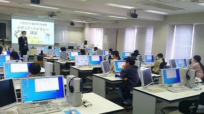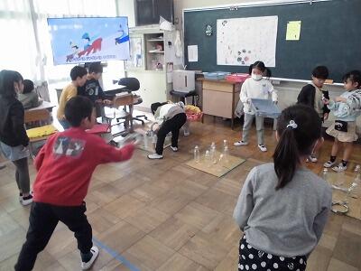 6年生が英語で学校の紹介動画を作成しました。そして、今日は、市内の他の小学校(5校)が作った動画を見ました。