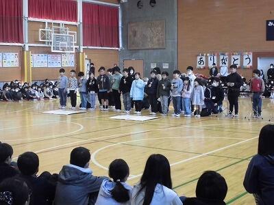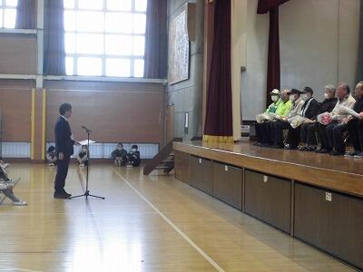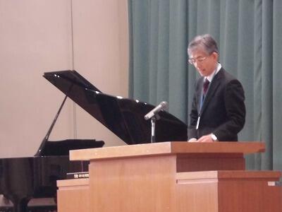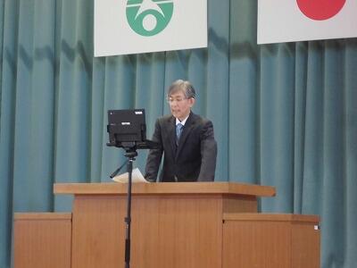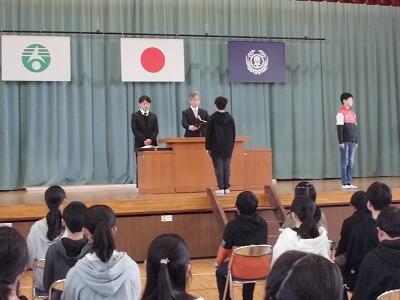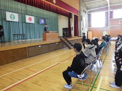 校長の話では、最初に能登半島地震についてお見舞いとご冥福をお祈りして黙祷を行いました。
