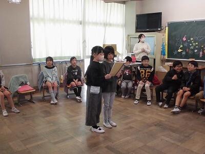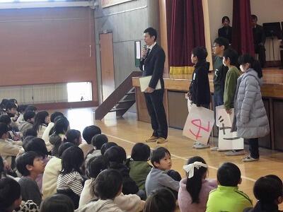 児童代表が2学期にがんばったことを発表しました。2学期は、運動会、150周年記念式典、持久走大会など行事がたくさんあり、実りある学期でした。子ども達の活躍や成長が著しかったです。