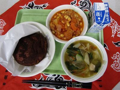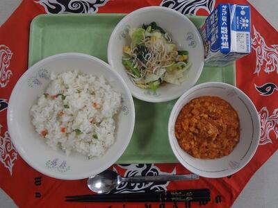 連日、6年生の卒業を祝うかのように人気メニューが続きます。今日は中華丼でした。