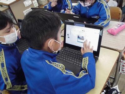 クロームブックを活用することで、他の学校の友達とも学び会うことができます。子ども達は、ますます英語が好きになりそうです。