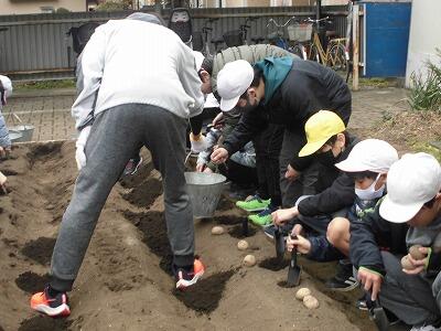 5年生が来年度の理科の実験に使うジャガイモを植えました。
