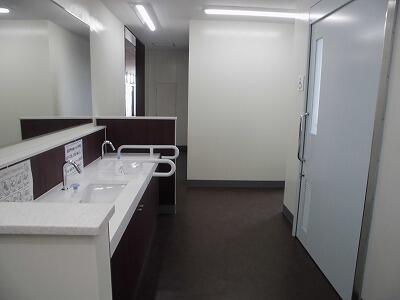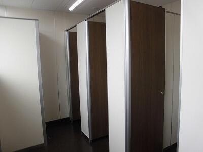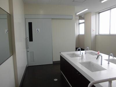 管理棟のトイレが使用できるようになりました。管理棟のトイレは、各階ごとに作りが違います。