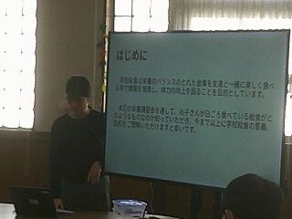 ランチルームで本校栄養士より、栄養や給食についての講義を行い、その後、給食の試食を行いました。