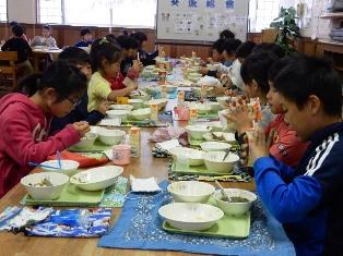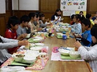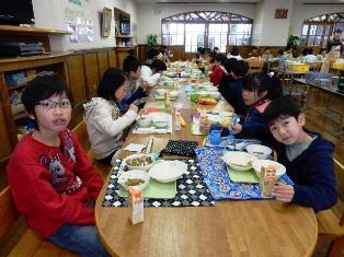 今日は、2年4組と4年2組の交流給食でした。
