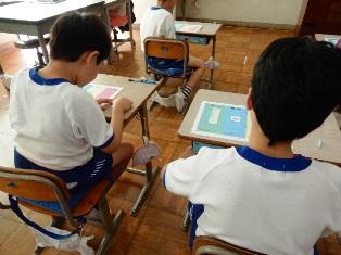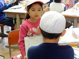 それを、隣のお友だちに分かるように説明しています。